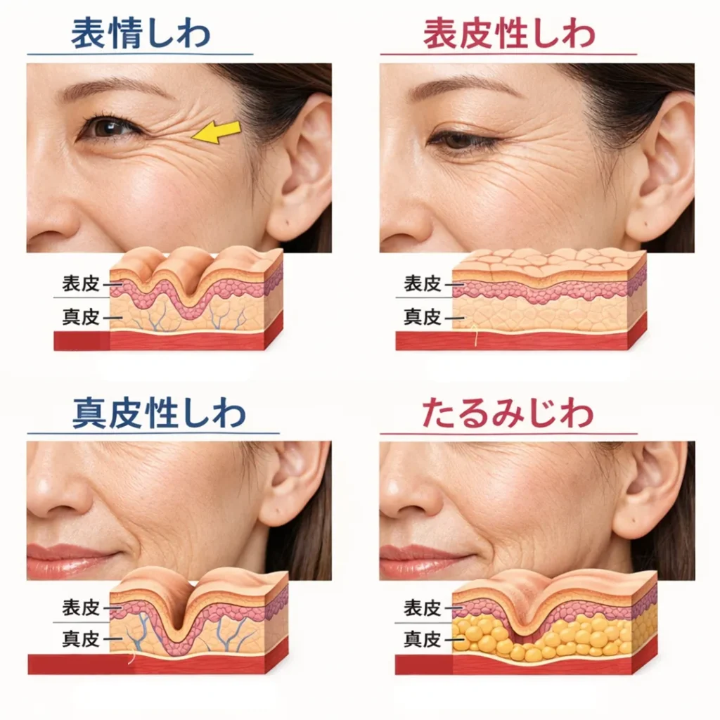 まずは、しわの種類と特徴を整理してみましょう。
