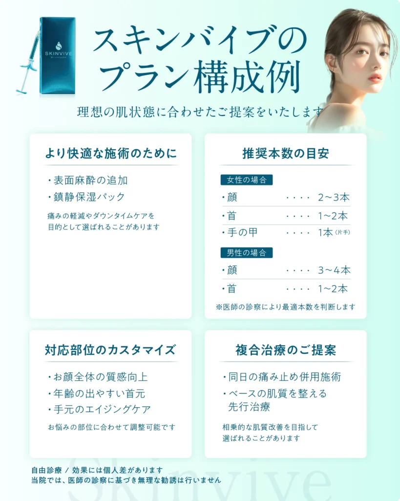 スキンバイブ/Skinvive(ボライトXC)は、肌質改善を目的とした繊細な注入治療だからこそ、「誰が・どのように行うか」が仕上がりと安全性を大きく左右します。