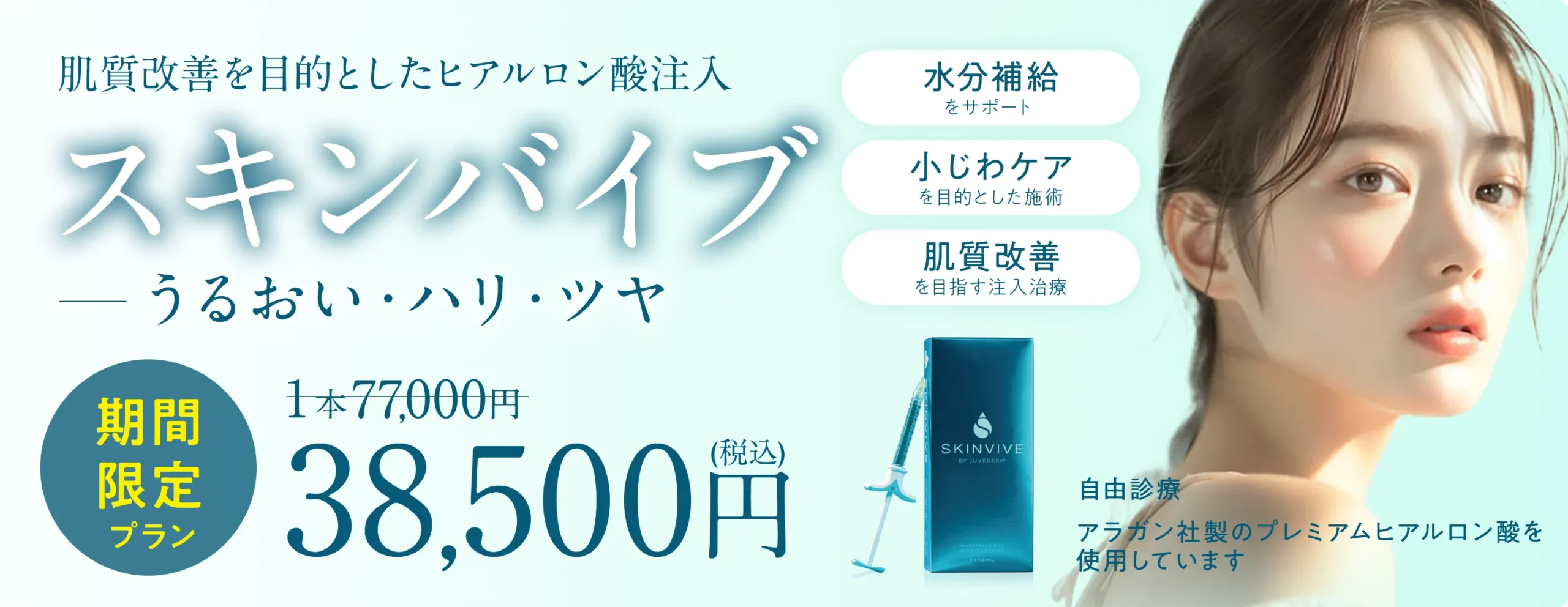 スキンバイブ/Skinvive(ボライトXC)は、アラガン社が新しく製材した「ジュビダームビスタ®︎シリーズ」のなかで肌質改善を目的としたヒアルロン酸注射製材です。厚生労働省から2020年12月に製材許可の承認を得ているため、治療効果や安全性が認められています。